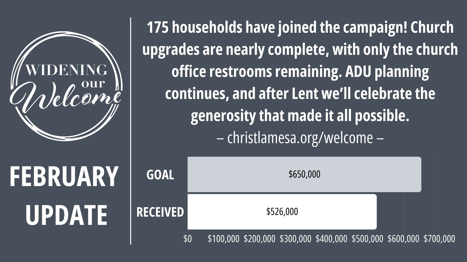 If, as an act of faith and generosity, families and individuals make a commitment above and beyond their current tithe/offering, we can raise all necessary funds in one year.
